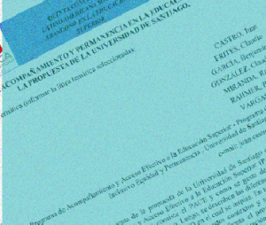 Castro, J. F., Frites, C., García, B., González, C., Miranda, R., Rahmer, B., & Vargas, P. (2015). Acceso, Acompañamiento y permanencia en la Educación Superior, la propuesta de la Universidad de Santiago.
